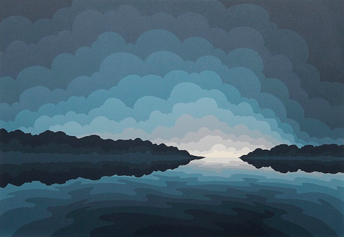 linear and atmospheric perspective. In a similar process, Ahlgren designed seriographic print editions also using a