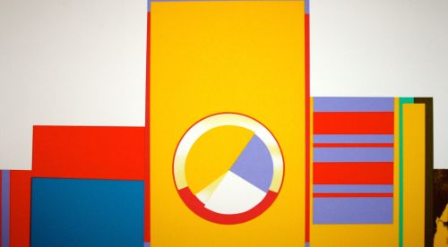 присущая его полотнам, отдает огромную дань геометрическому канону Мондриана, экспериментам