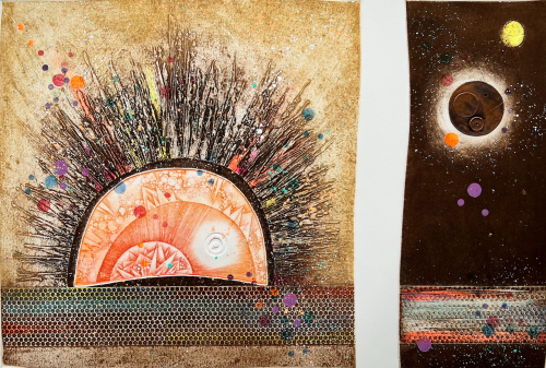 сухой иглой на мягкой поверхности), художник пытается отразить в своих работах собственное
